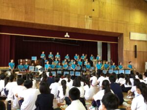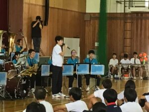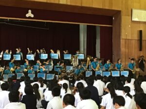 吹奏楽部の演奏から幕をあけ、全校生徒の前で見事な演奏を披露してくれました。
