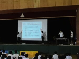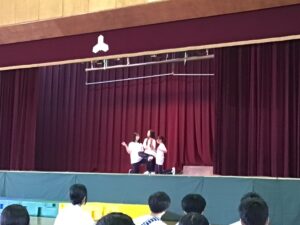 また、有志の舞台発表では2組がダンスを披露してくれました。全校生徒と保護者の前で物怖じせずに堂々と練習の成果を発揮し、かっこいい姿を見せてくれました。