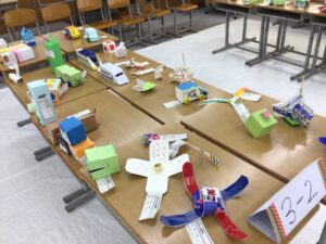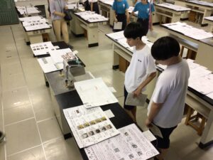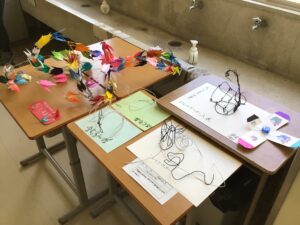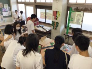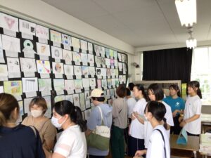 展示発表見学では、家庭科部・美術部・囲碁将棋部、夏休み課題作品や教科で取り組んだ作品、そして、やまびこ学級での授業作品も展示されていました。どの作品もアイディアや個々の努力がみてとれる素晴らしいものでした。昼食は各自が注文したものをみんなで食べ、給食とはまた違う空気感で楽しく過ごしました。