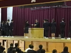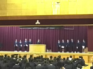 続いて、新生徒会役員へ校長先生より任命証が授与され、新生徒会長が代表として決意を述べました。