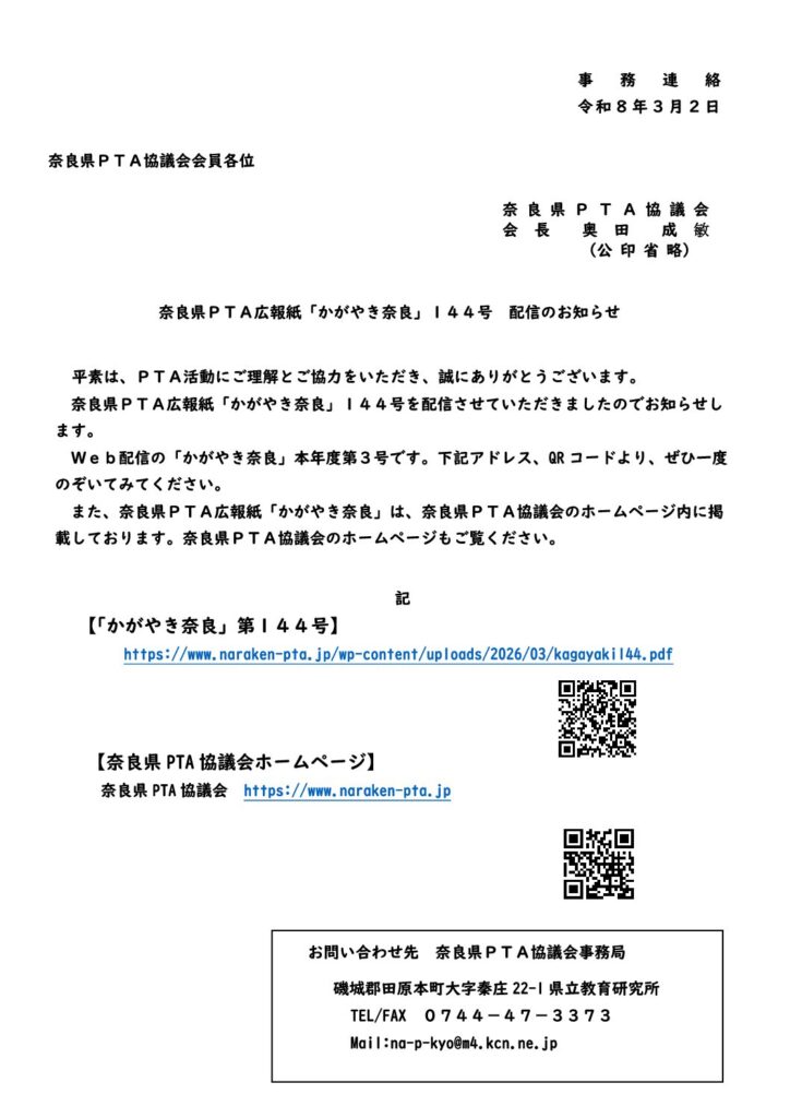 生駒郡PTA事務局よりお知らせ