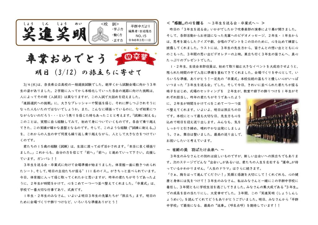 平群中だより「笑進笑明」No15