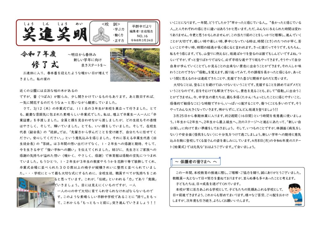 平群中だより「笑進笑明」No16
