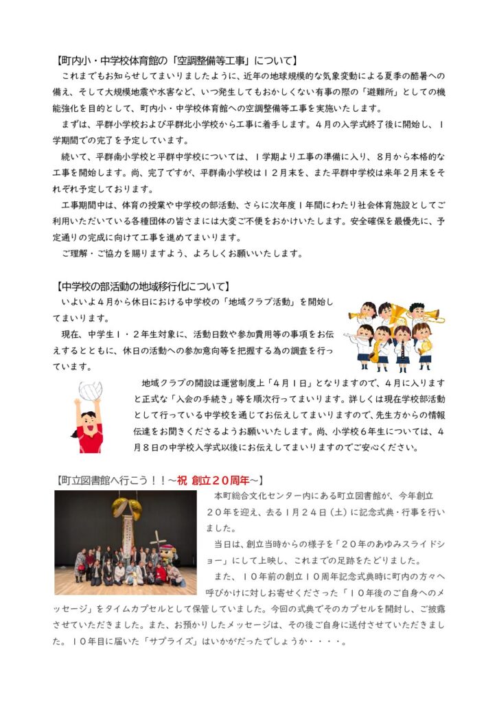 平群中だより「笑進笑明」No16,教育長だより第4号