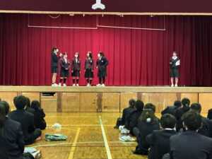 生徒会長からの歓迎の挨拶に始まり、生徒会メンバーや専門委員長からは、生徒会の仕組みや委員会について説明がありました。